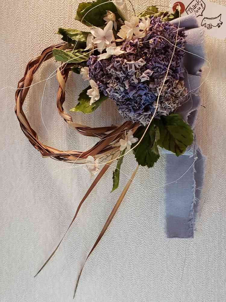 アジサイくしゅくしゅと土台はなんと天使の釣竿。みつあみしています。