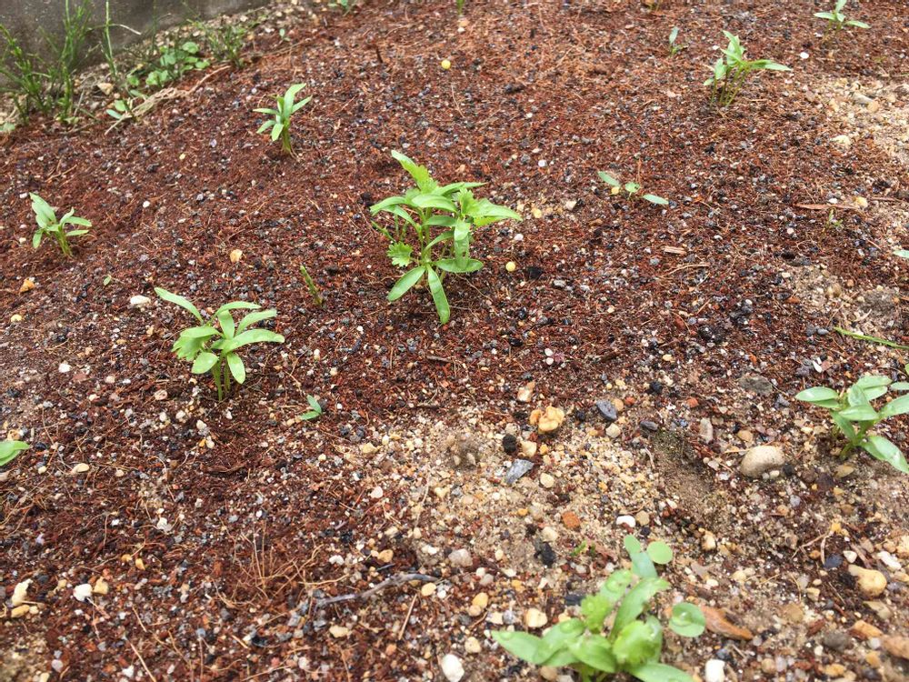 種を分割して水につけてから蒔いたら発芽率高くてびっくり。密集している。さてこの後どーしたらいいのか。