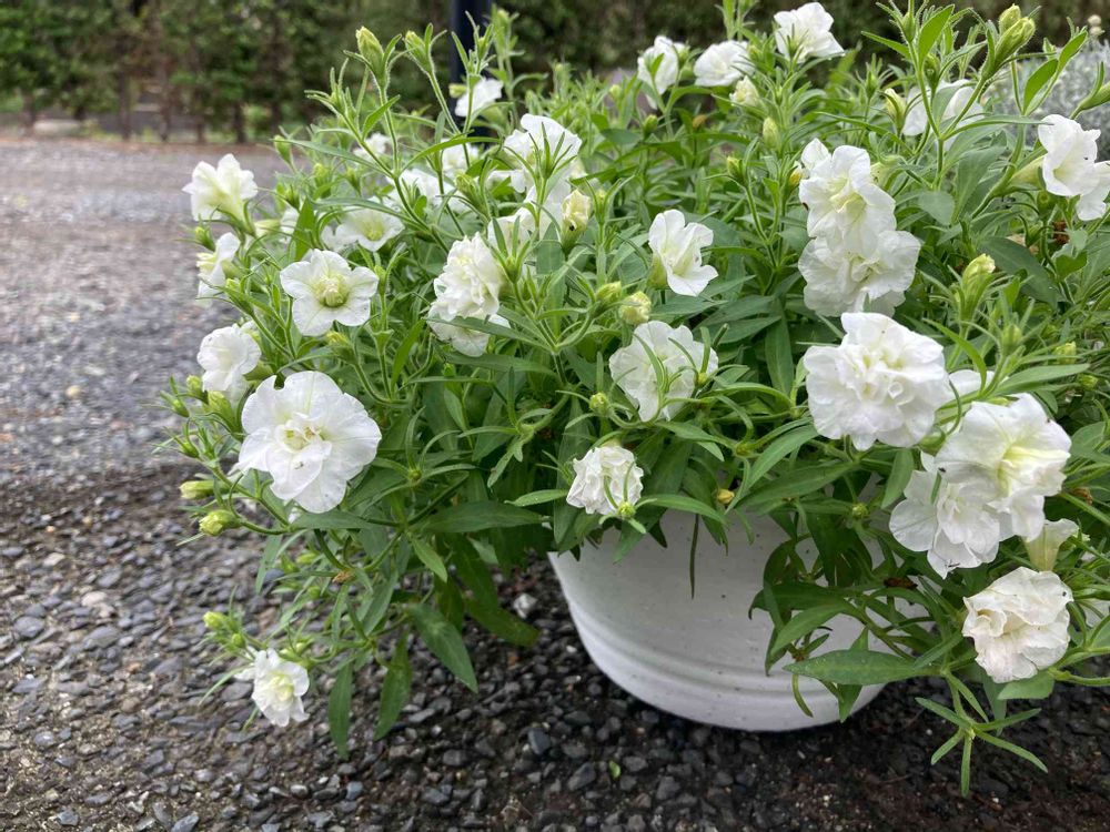 八重咲きペチュニア,涼しげ,白い鉢の投稿画像