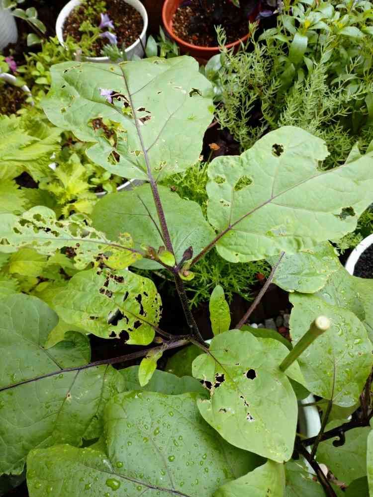 茄子の葉🌱が一夜にして、食い破られてしまいました😅