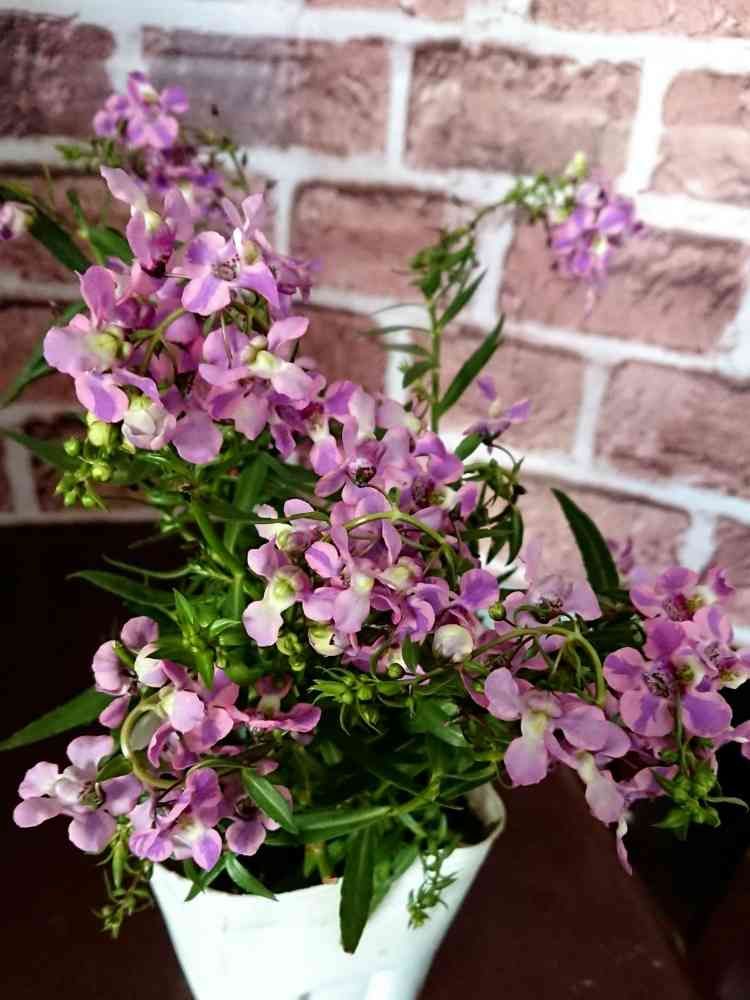垂れ下がって来たら花台に乗せて風に揺れるのを想像してアンゲロニアさんお迎えです( *ˊᵕˋ)❅॰ॱ.•*¨*•.¸¸♬