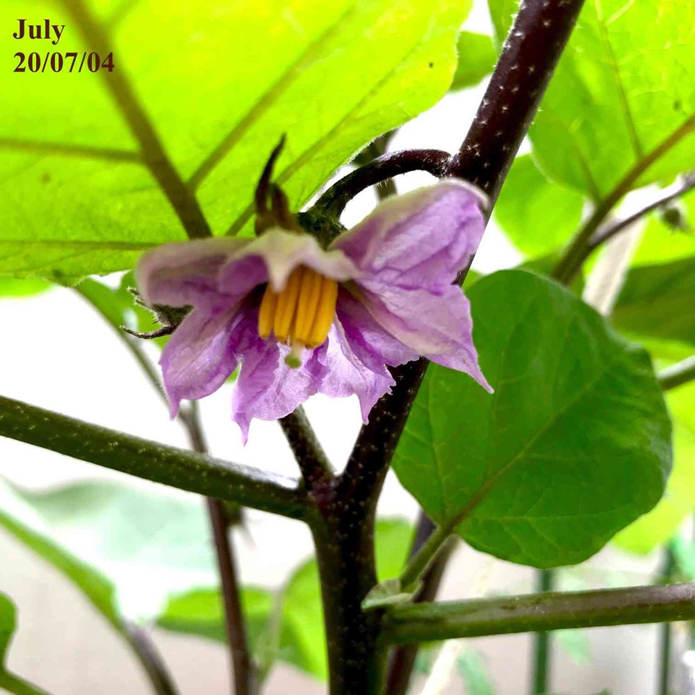 ナスの三番花も咲いてました✨今度のは雌しべが長いやつヾ(@^∇^@)ノ