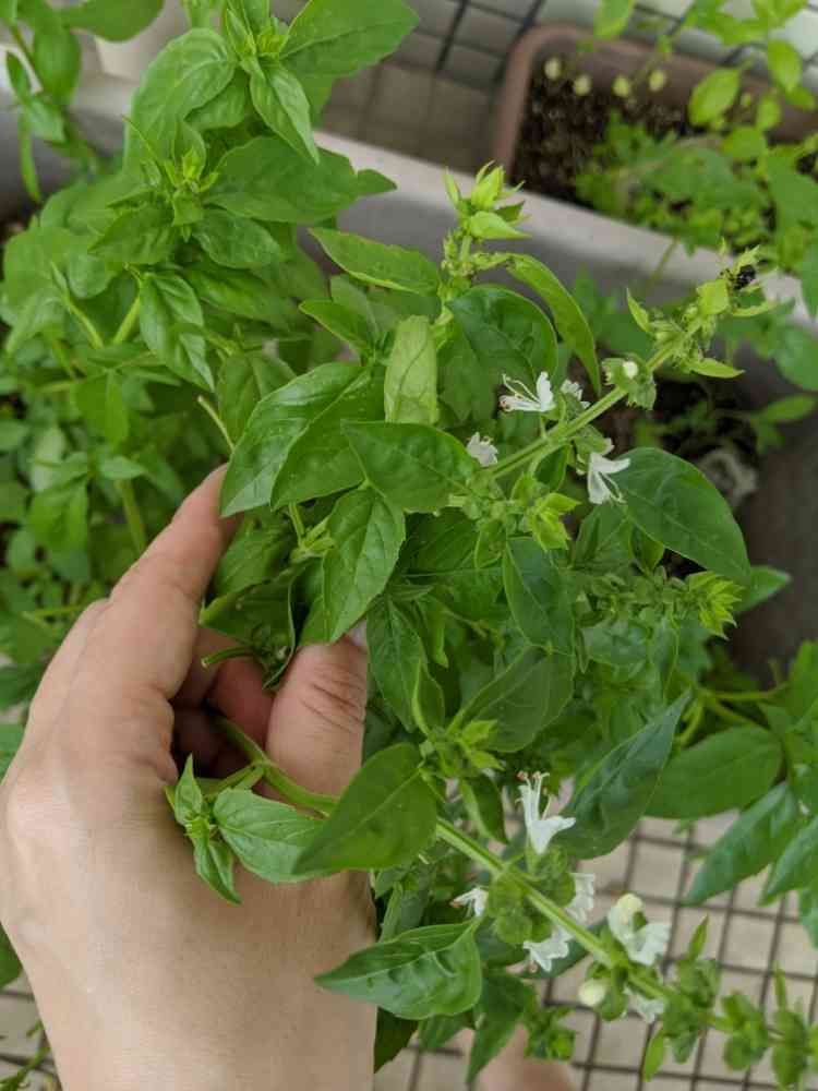 バジルの長男が開花した。虫さんも来てくれてお祝いかな