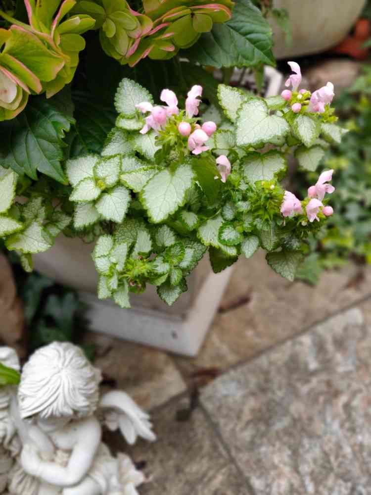 実は、ラミウムをお迎えしたところなんです。葉っぱが綺麗だなと、寄せ植えに入れたんですが、こんなに可愛い花が咲くとは❣️
