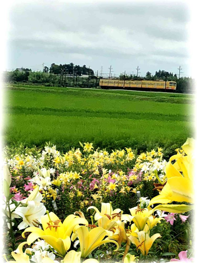 黄色い電車と黄色い百合☺️