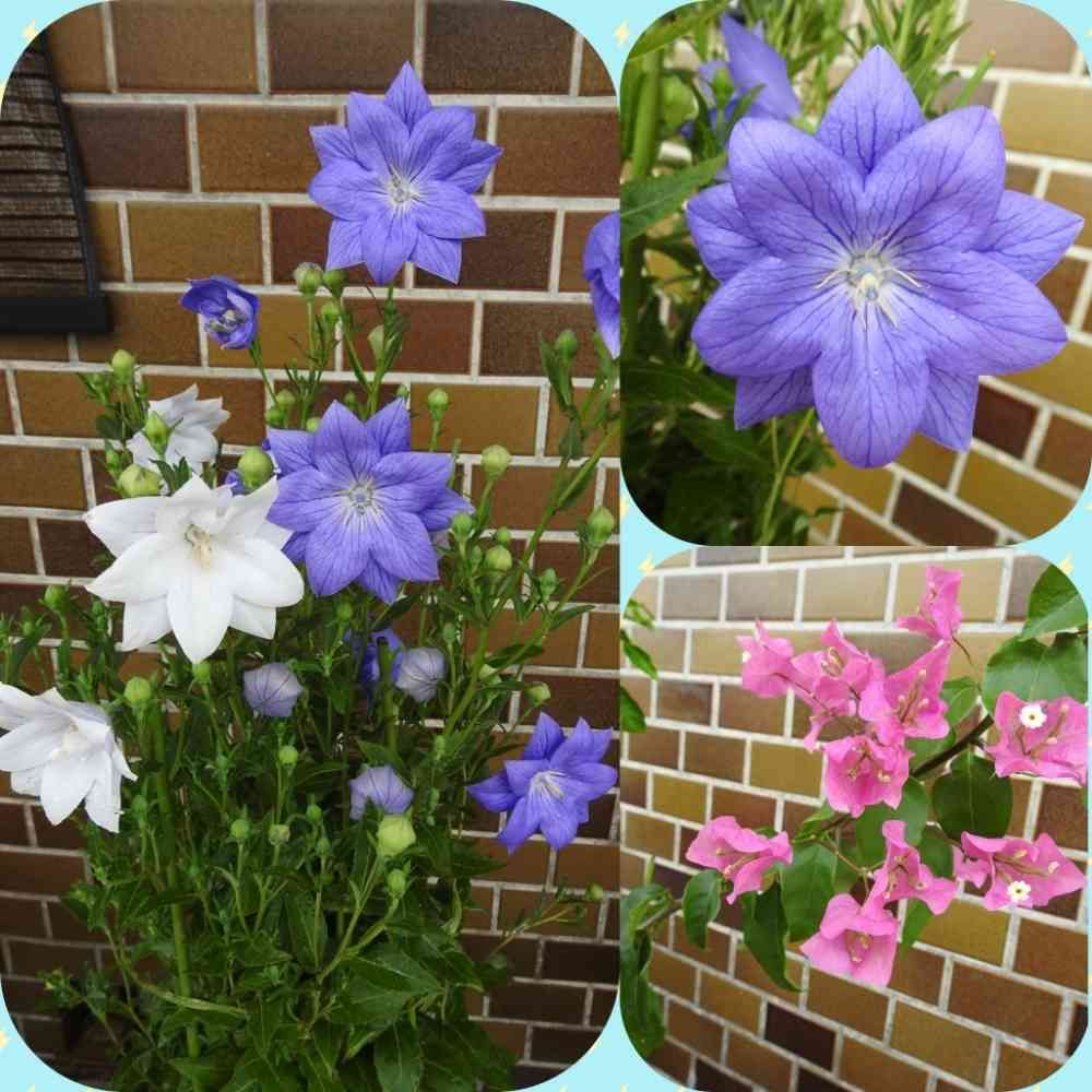 主治医の玄関先で🏵咲くキキョウとブーゲンビリアの花🏵🌺