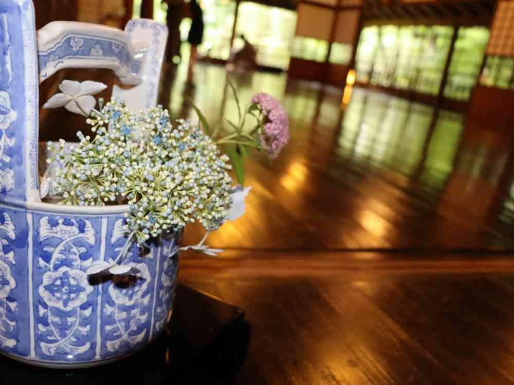 艶々と磨き上げられた床板が、庭の緑を美しく映し出していました🌿