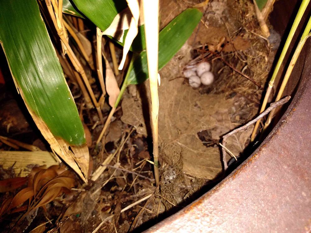 ツバメの巣は屋根の下とか玄関とかをイメージしますが、アメリカでは鉢植えの中ですか〜