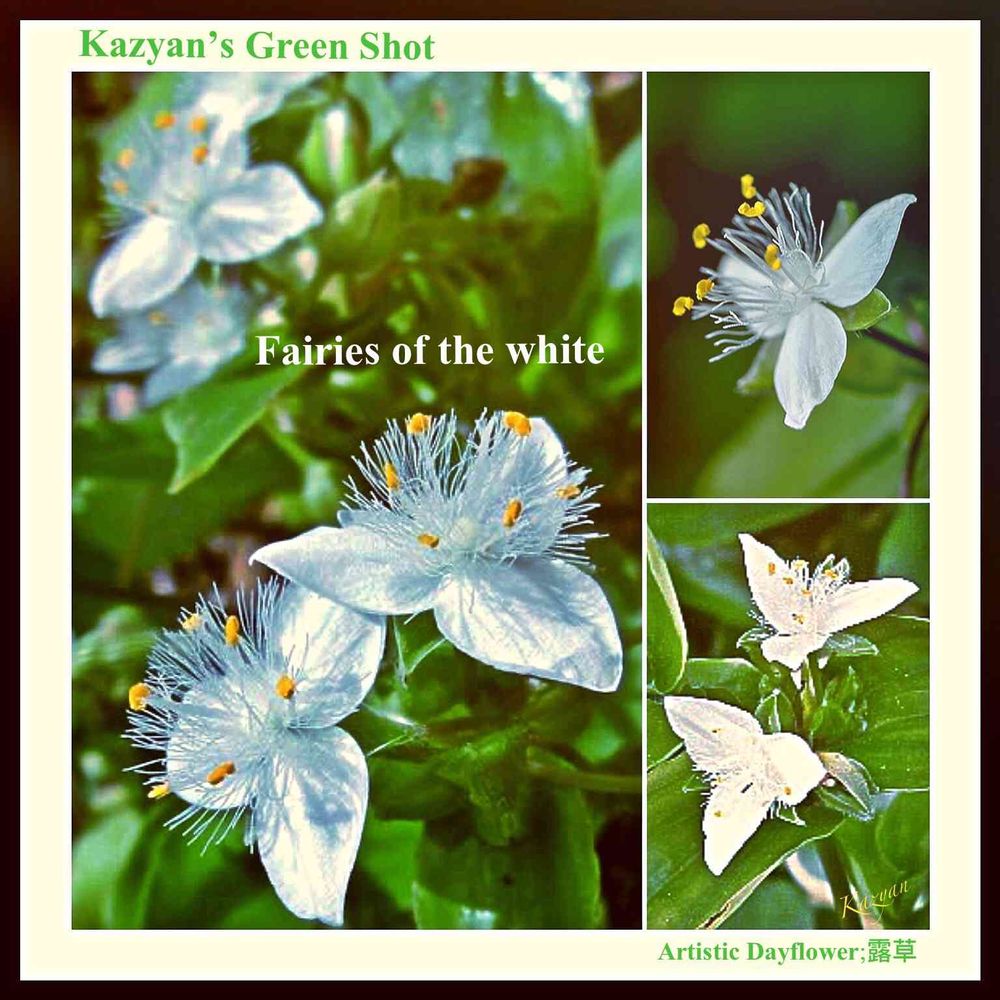 白い露草は、露草の中では最も清雅な花ですが、とても可愛らしい白い衣装をつけたフェアリー:妖精たちが集って仲良くバレーダンスを踊っているかのように映えて観えます(╹◡╹)