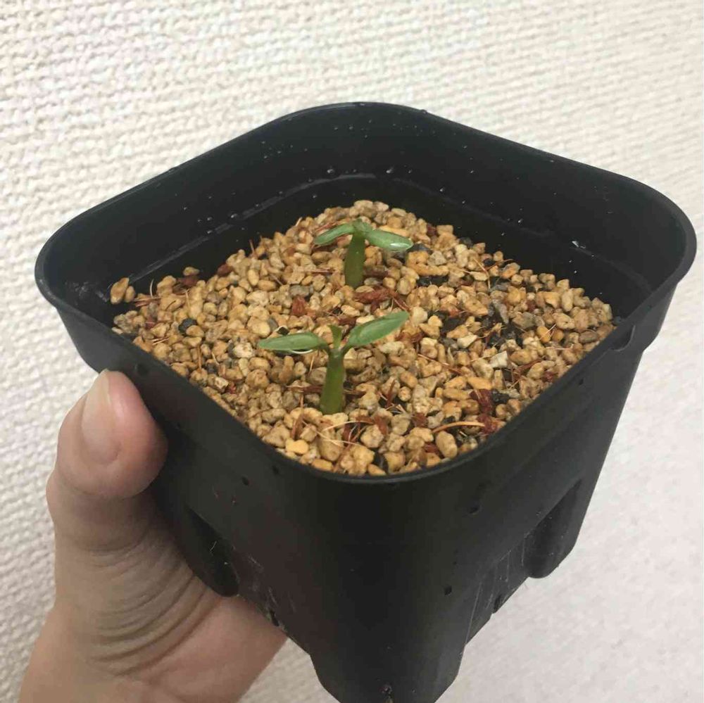 こちらも種まきから1ヶ月経ったパキポディウム。アデニウムと違って根切りもないのでさらっと鉢上げ。