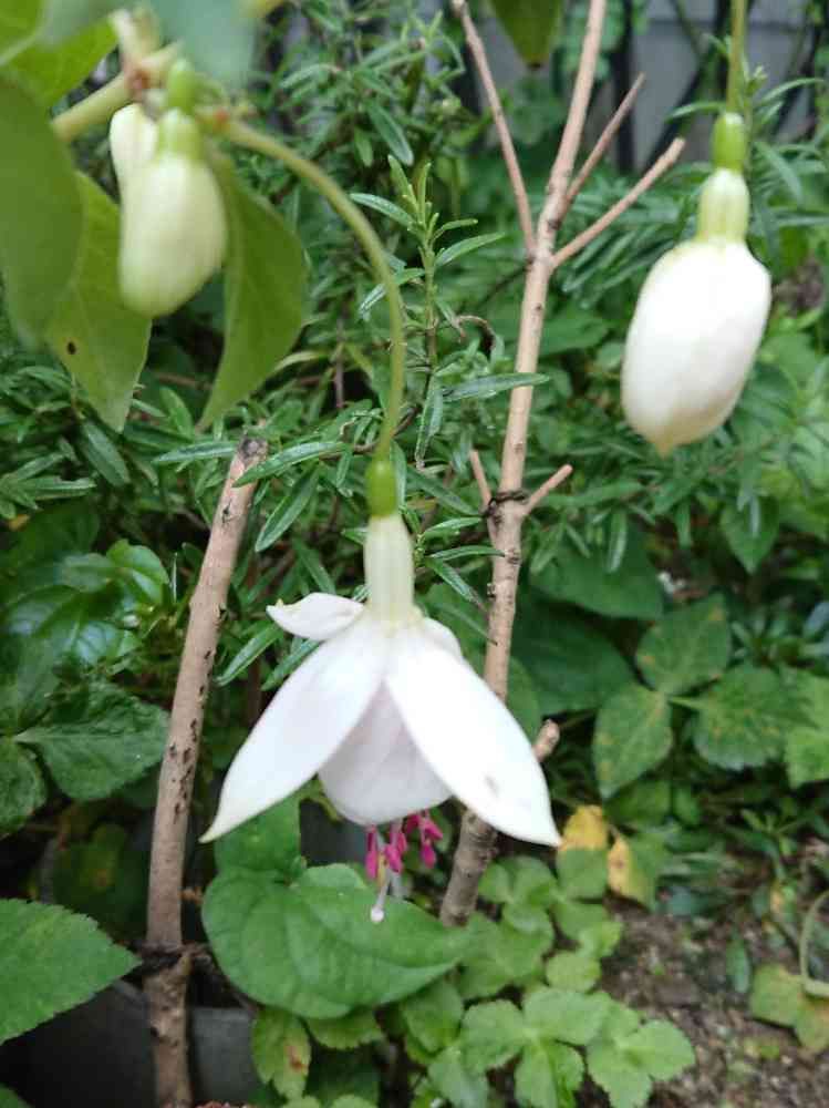 白くて、可愛い形のお花がぶら下がる要に咲いてます✨❣️