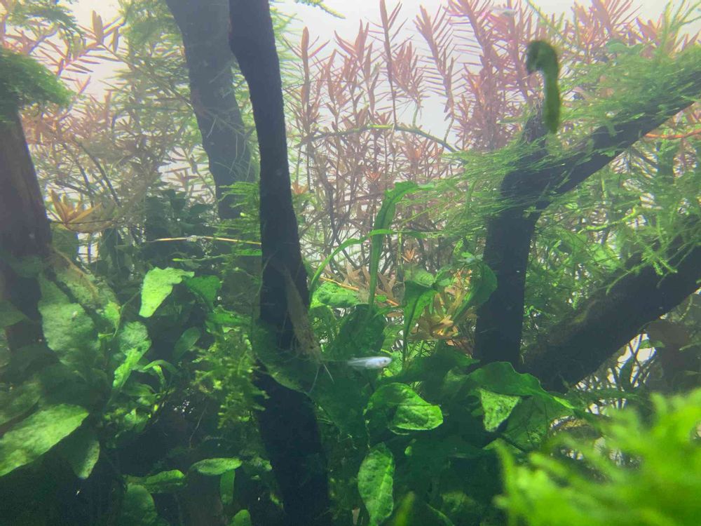 今は、ヌマエビとメダカ、子供が川でとってきた小さな三つのひれがある、金魚みたいな子が入ってます😊