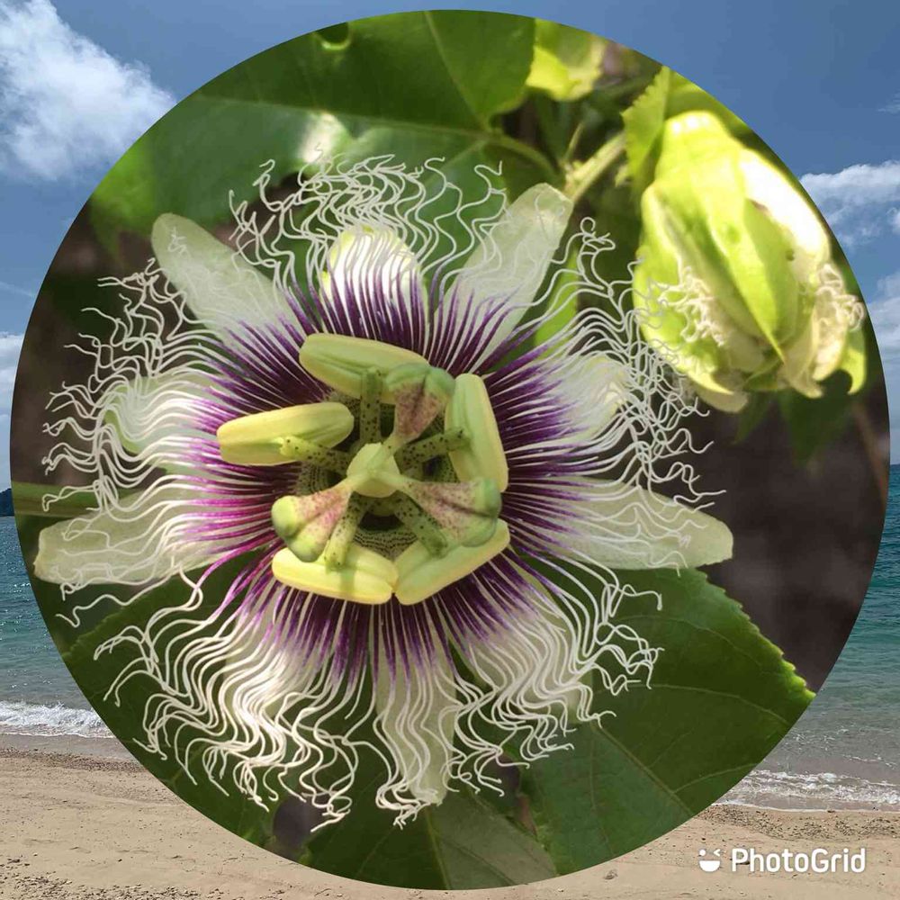 こちらはパッションフルーツのお花ですって🤍💜✨時計草かと思った(*´艸`)