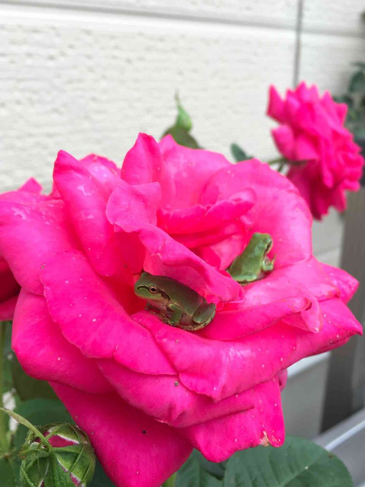 うちの実家では、🐸ちゃん達には、赤薔薇が人気🌹で争奪戦となっております。