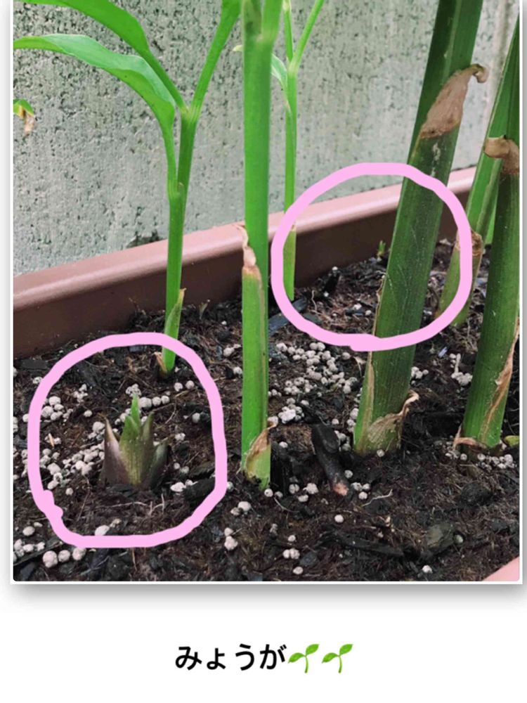 苗?根っこ?を購入しダメ元で植えた🌱みょうが🌱ホントに出来ましたヽ(。>▽<。)ノ💕