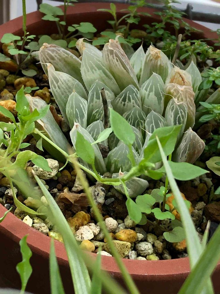 古い葉が汚いなー。一度傷むと立て直すのに時間がかかるのがハオルチアのネックなところですね。