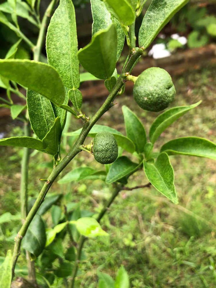 こちらは2年目で初めて実がついた柚子(多田錦)ですが、ちょっと様子がおかしいような気がして気になってます。