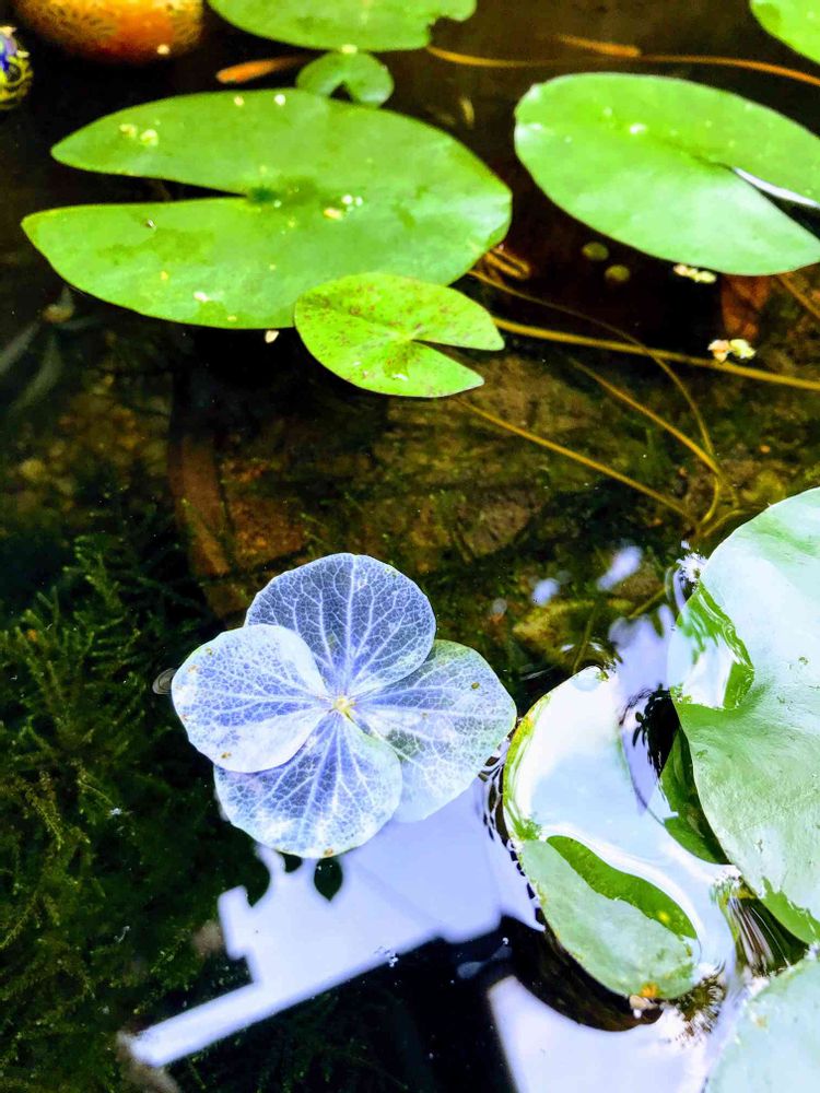睡蓮鉢に浮かべていたアジサイ。