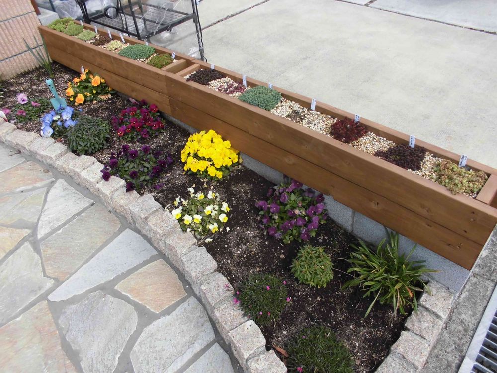 現在の玄関アプローチにある多肉棚の前に製作した多肉プランター🍀 セダムだけ植えてました。春先はどれも絶好調だけど、夏と冬はセダムの種類によって成長にものすごく差がでます。(^^)/(>_<) 雨が多いと成長が早すぎて意外と管理しにくいんですよねー(+o+)