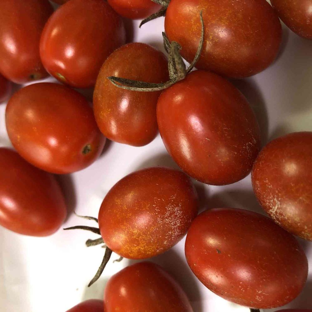 収穫したミニトマトが白い粉がたくさんついています。