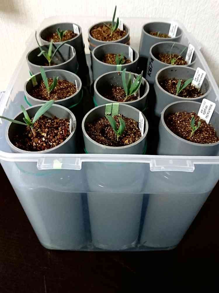 奇想天外は播種後、葉より先に根が出ます。私は双葉が顔を出してから、この塩ビパイプに植え替えましたが、その際に、いくつか根を折っています。