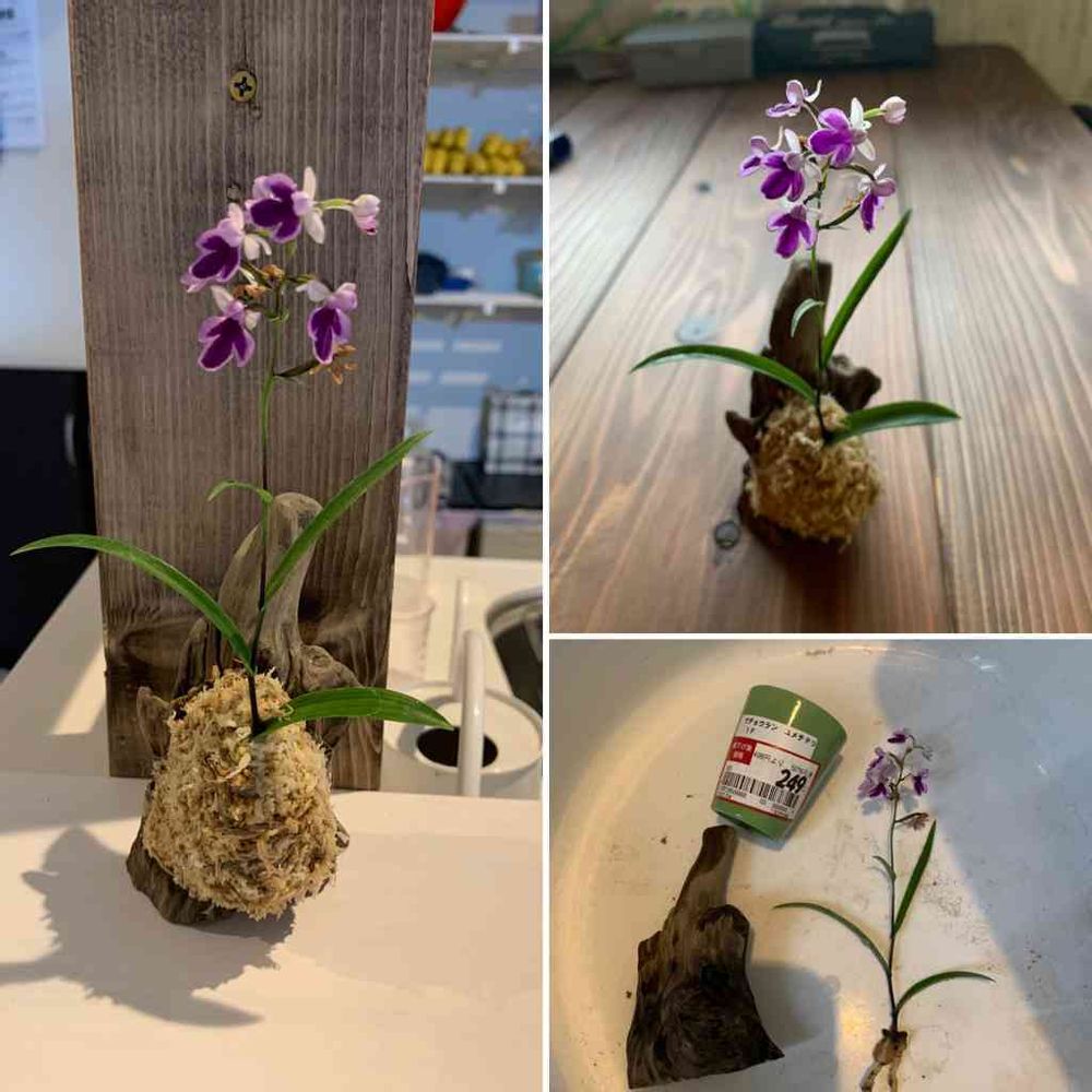 優しく土を落として根を洗って、AAAA+の高級水苔で優しく巻いて板付ならぬ端材付け。