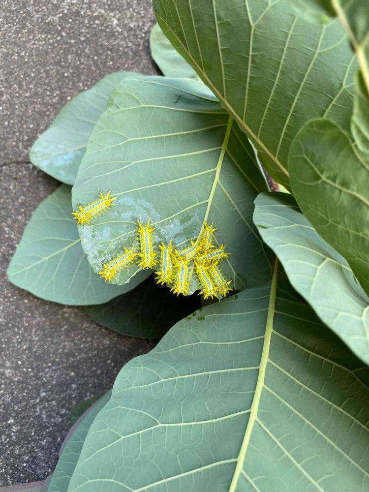 ウワァ😱イラガ😱🤯触らなかったですか?電気虫というくらい刺されたときの痛み、ショック!!😫私はブルーベリーで2回目ヤラれてます😭バチッていうんですよ、ホントに!!あの痛み!感電したと思いましたよ!皮膚科いきましたよ😭2回目は厚いゴム手袋の上からでもうん?と気づく衝撃がありました。ベニカとか、マラソン、スミチオン、モスピラン等の殺虫剤は辺に散布しておいたほうが安心ですよ😰