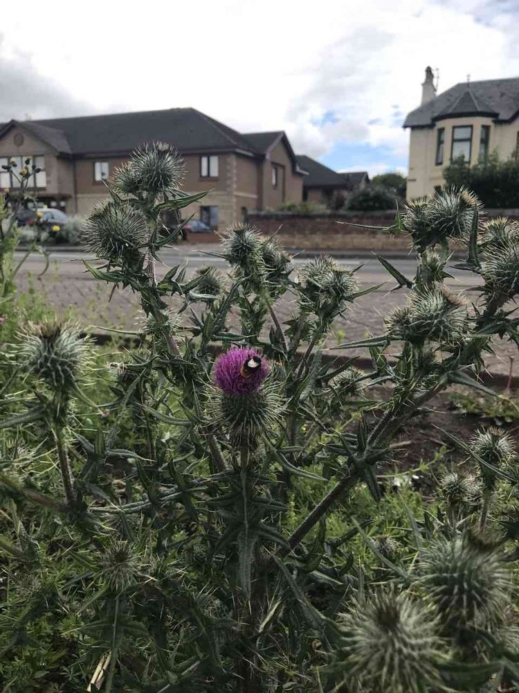 スコットランドの国花のアザミ(thistleシスル)が、現在スコットランドのあちこちで自生していて開花してます💛 蜂さんがお仕事頑張ってます~
