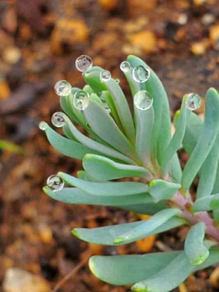 何でまん丸のまんま落ちずに先っぽにくっついていられるのか不思議😊