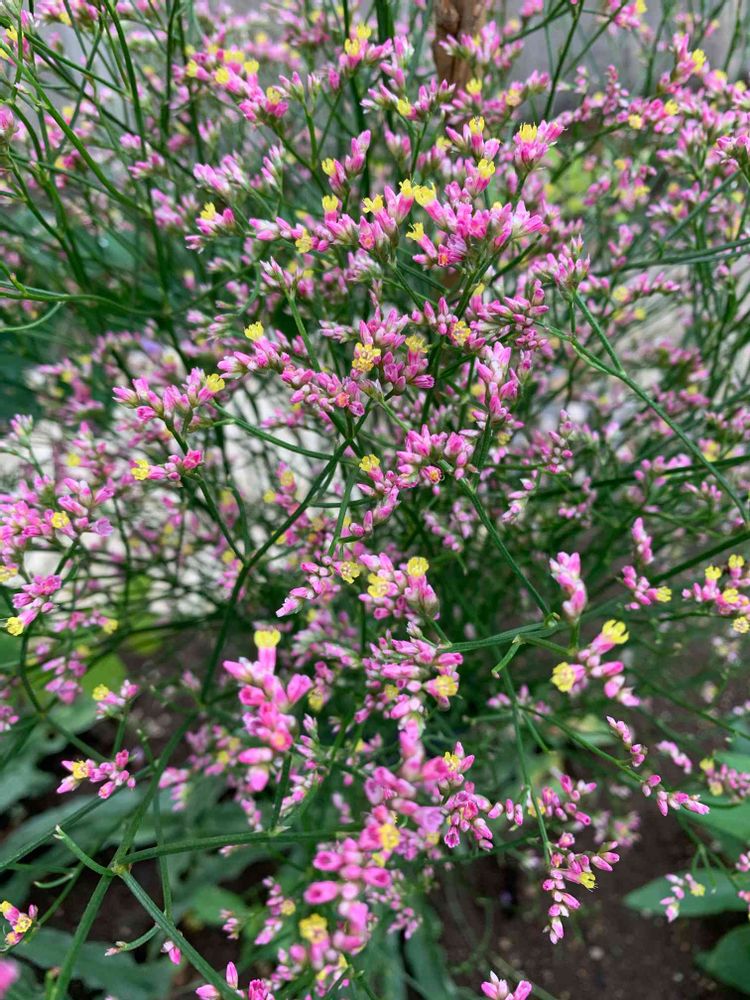 さん 普通のスターチスより花は小ぶりです。離れてみるとかすみ草のようにみえました。昨年苗で購入して植えたのですが豪雨や虫にやられて今年は咲きませんでした