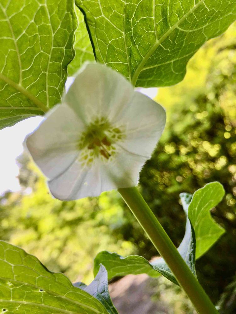 今日のお花ー!これがホオズキのお花なんだねー!沖縄では咲いてないよー!今、風船カズラが沢山咲いて膨らんでいますー!♥♥