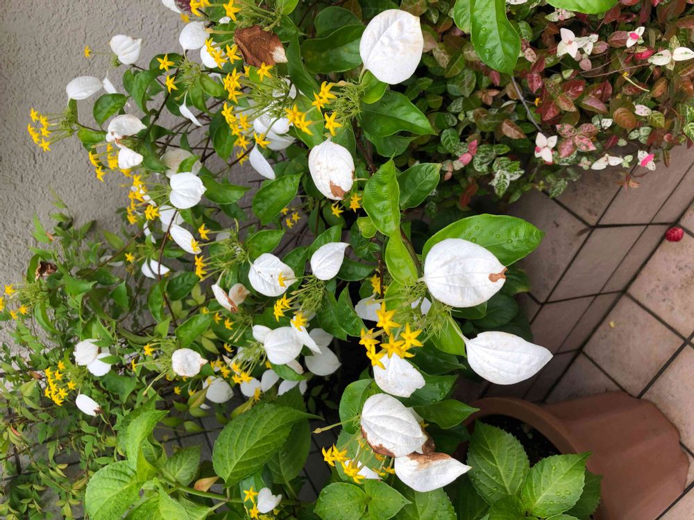 コンロンカ(ハンカチの花)と初雪カヅラでしょうか🤔
