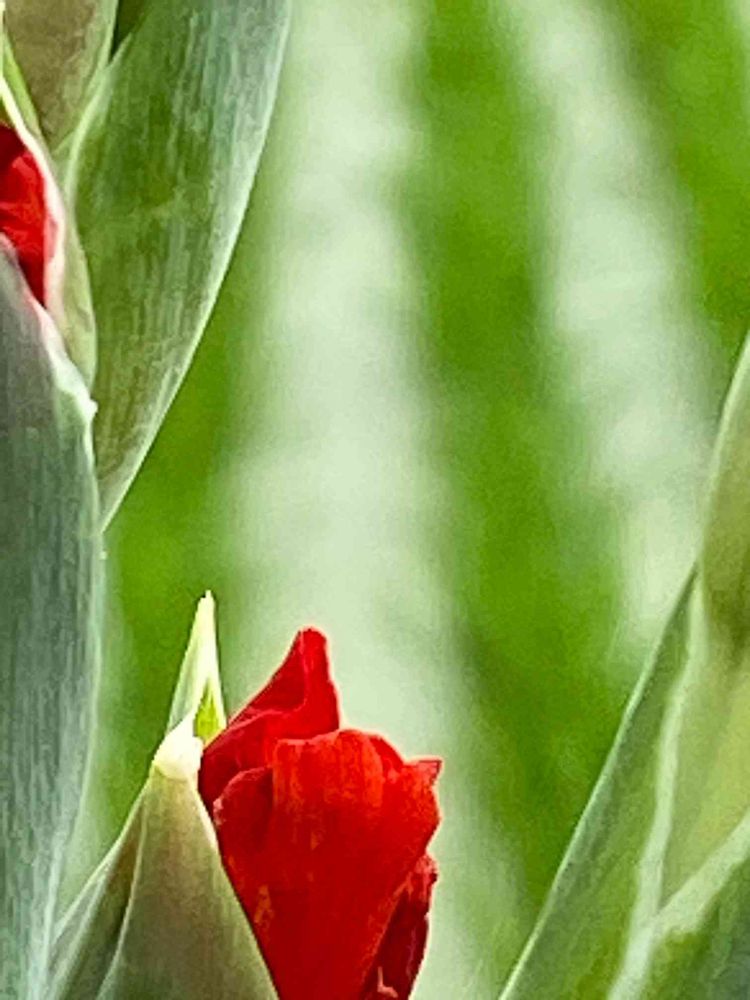 グラジオラスが小さな蕾でも、綺麗な赤でとても素敵です❤️