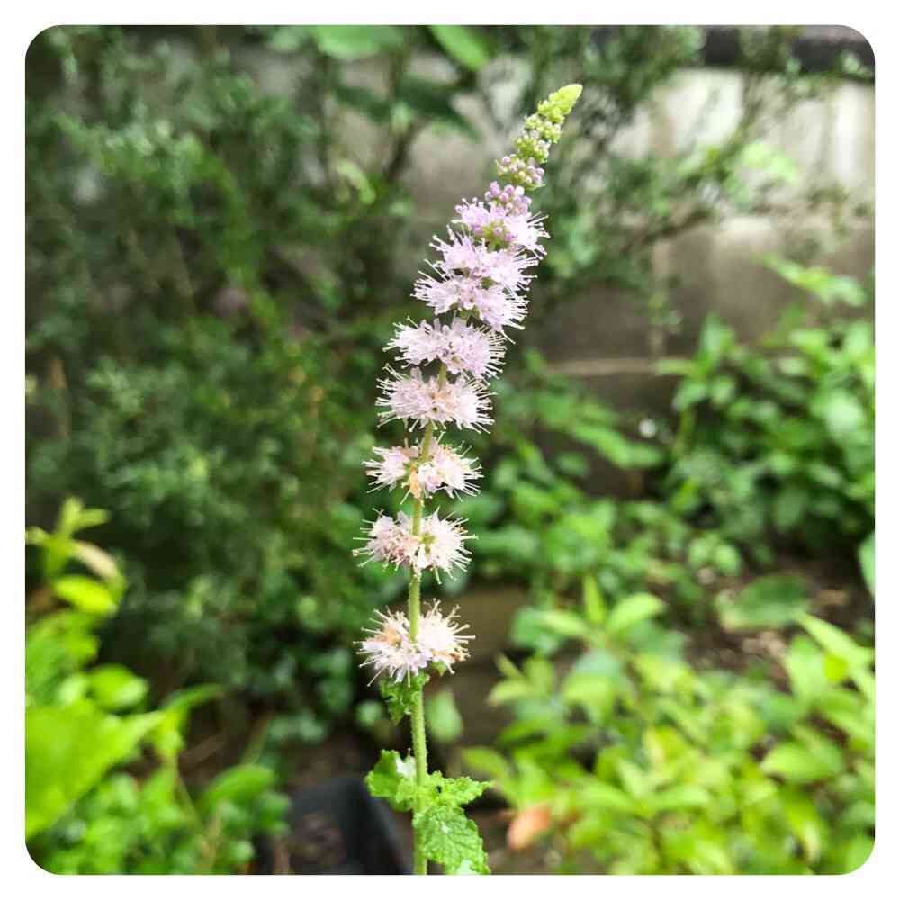 ストロベリーミントは葉っぱも小さくて、そんなに広がりもせず毎年こじんまりと定位置に咲きます。