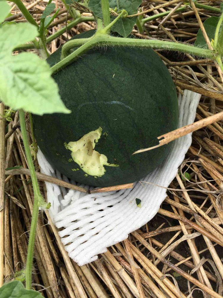 誰が食べたんだろう?😫カラスかな?裏の畑で今年はキジは見ていないのでカラスが容疑者で〜す😤😤黒皮スイカなら食べないと思ってたのに………😠