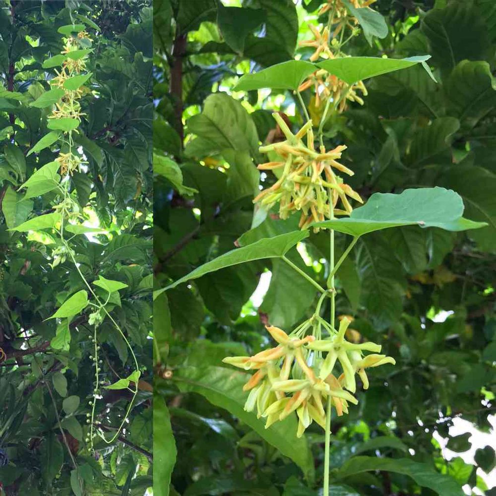 そうです!蔓状になっているので、他の木に巻きついて咲いていて、木のあちらこちらから夜来香の花が顔を出していますよ〜😊
