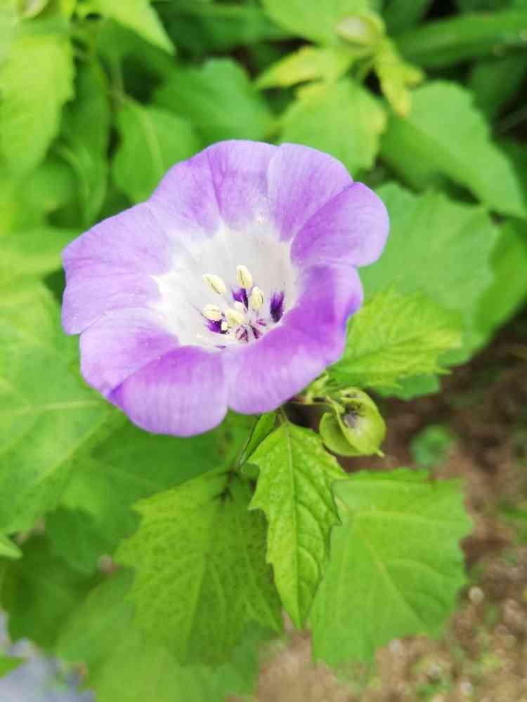 こちらは「青花ホオズキ」や「黒ホオズキ」と呼ばれる鑑賞用ホオズキの花。