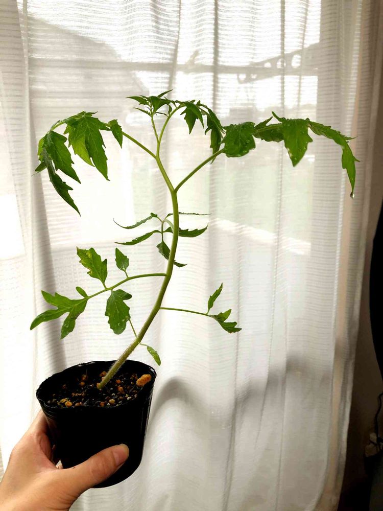 トマトは鉢が小さいと、根をあまり張れなくなるので収量は減ります。一方、水分の吸収が抑えられるので、糖度が上昇します(根域制限栽培といいます)👍
