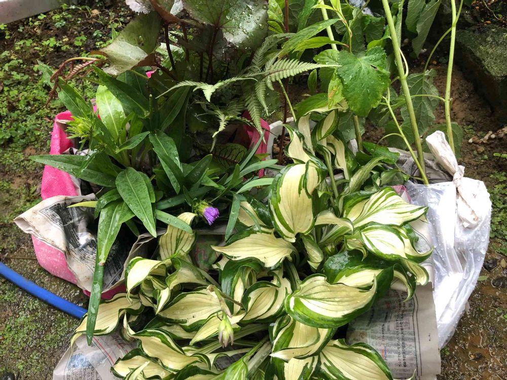 今日も花友さんより、苗を沢山頂きました😆(お庭これから作る予定だと話したら、苗沢山買わなくちゃいけないでしょと。)