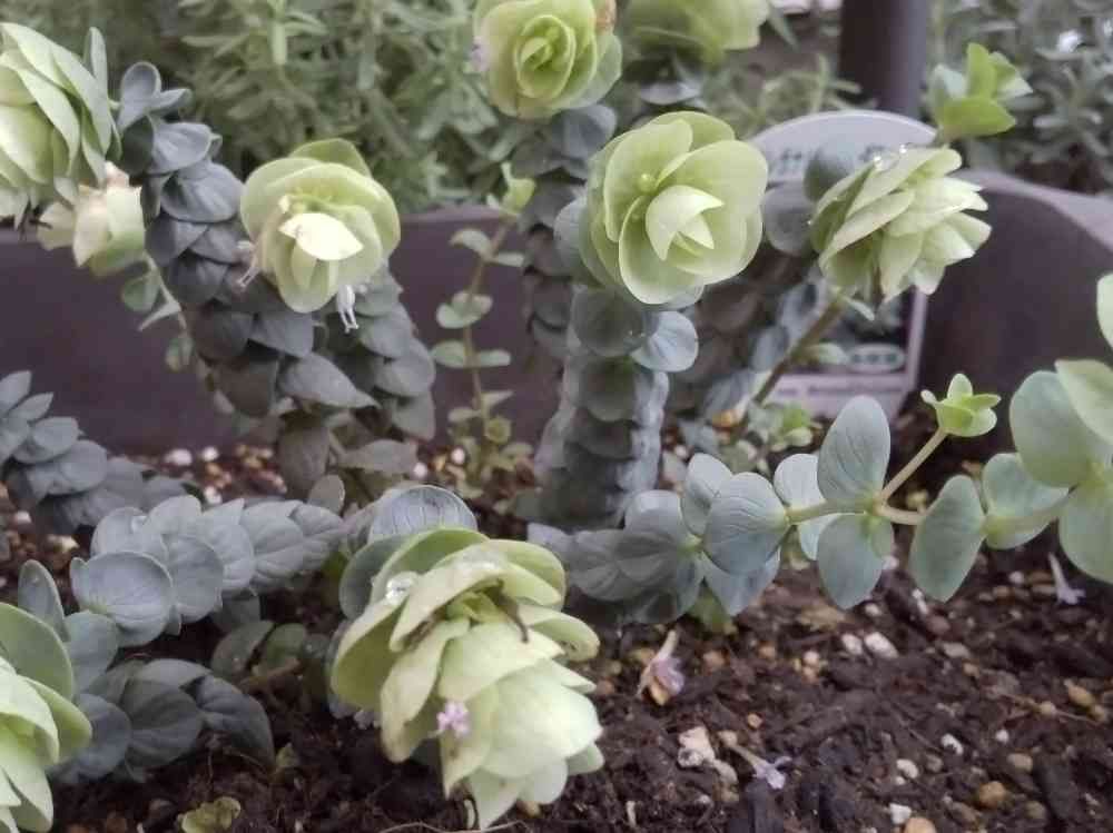 オレガナム ロタンダ フォーリア🎵青い葉が花のように見えますが、ピンクの小さい花は枯れました➰😅