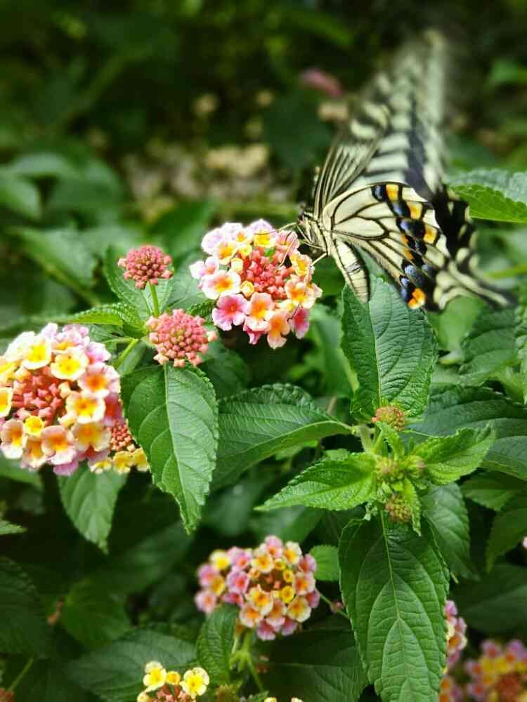 ちょうどランタナを見ていたら、アゲハが飛んで来て‼