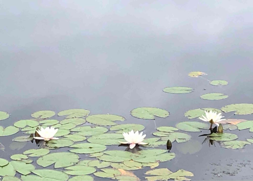諸橋近代美術館の前に白とピンクの睡蓮がありモネを思わせる雰囲気でした。