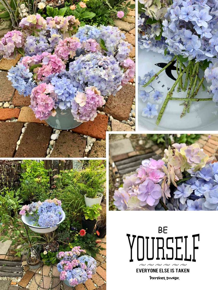 紫陽花、色味の変化ない!って思ってたけど、カット✂︎して、こうやって見たら、ちゃんと変化してたわ🤣
