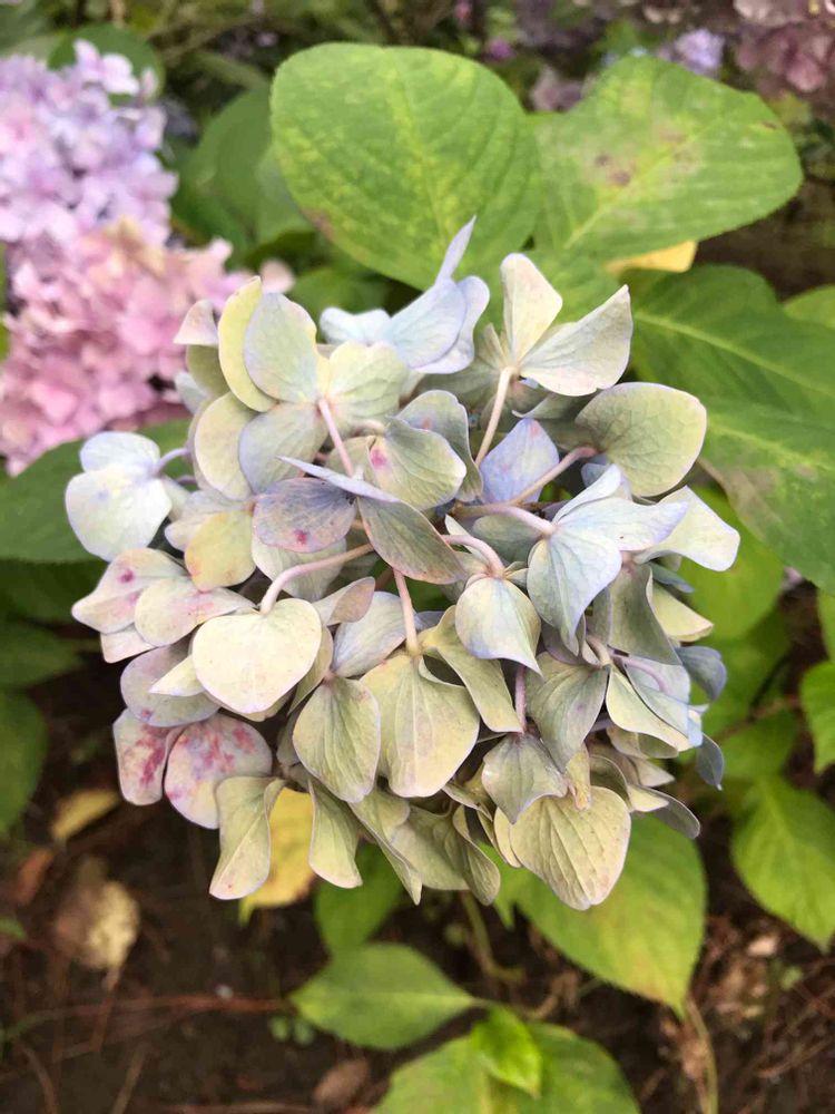 「一般的なアジサイです。条件が揃うと、写真のように、色が変化して秋ころまで楽しめます。」かも!