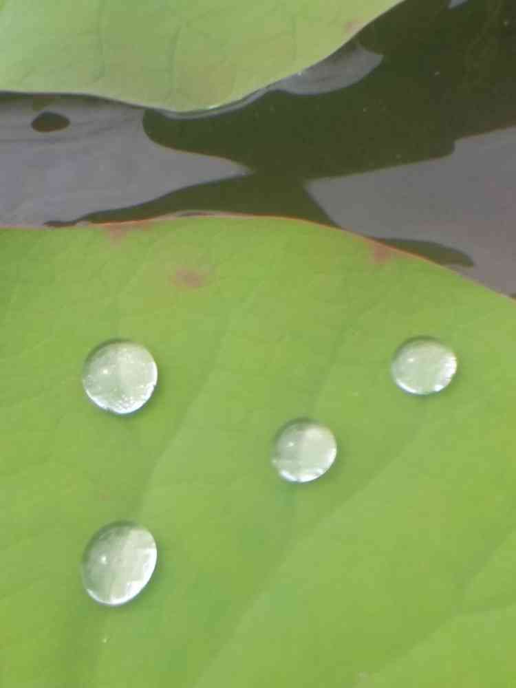 大賀ハスは咲いていませんでしたが、葉の上の水滴があまりにもキレイだったので…✨