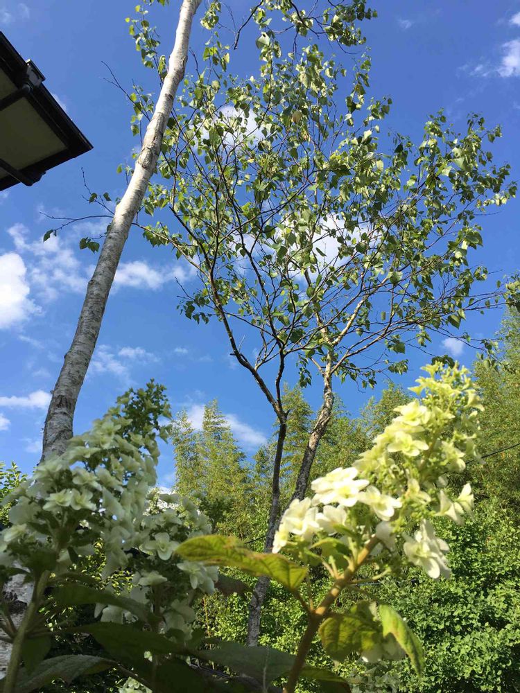 葉が付かず、やきもきしてたけど、今はこれくらいあるから白樺らしく爽やかな樹形になりました😄💦