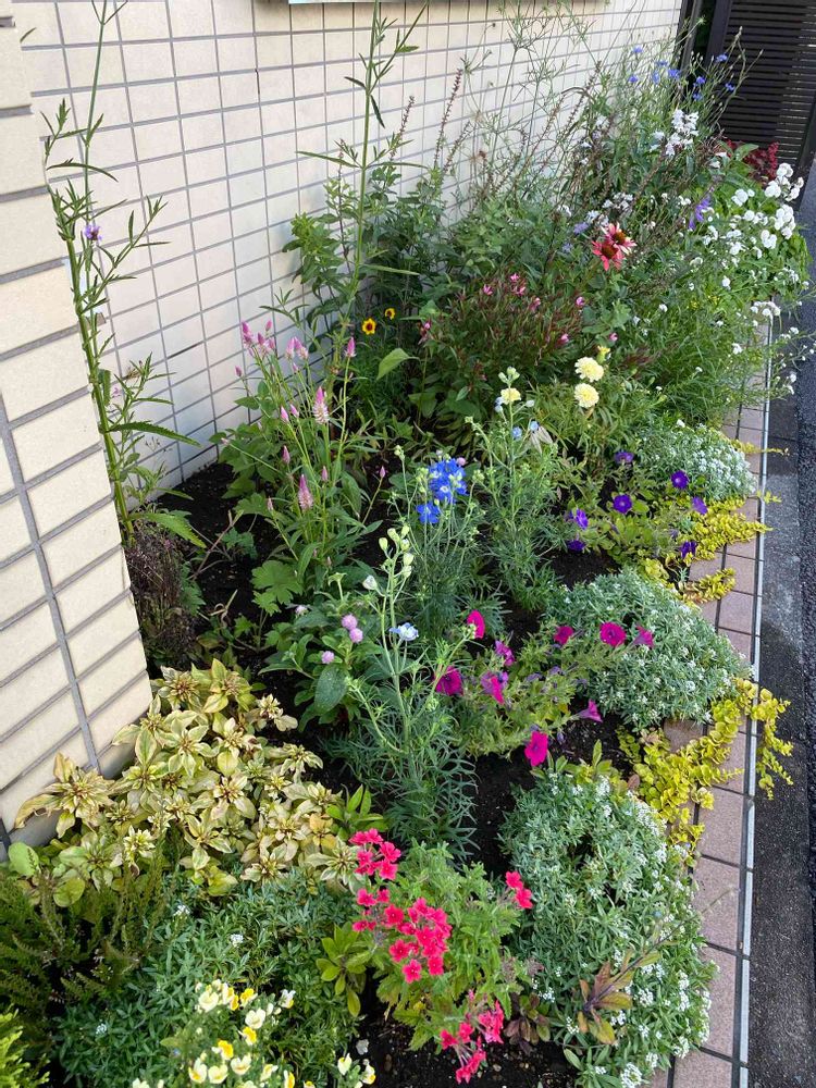 新しい苗を植えたばかりの夏花壇🌸🌼🍃