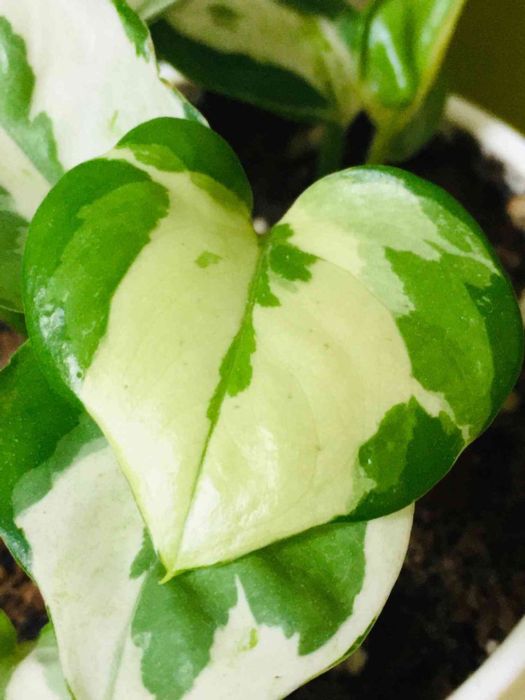 と、家に入り窓辺の斑入りポトスに目をやると、カワイイ♡型に気づき📸(*⁰▿⁰*)
