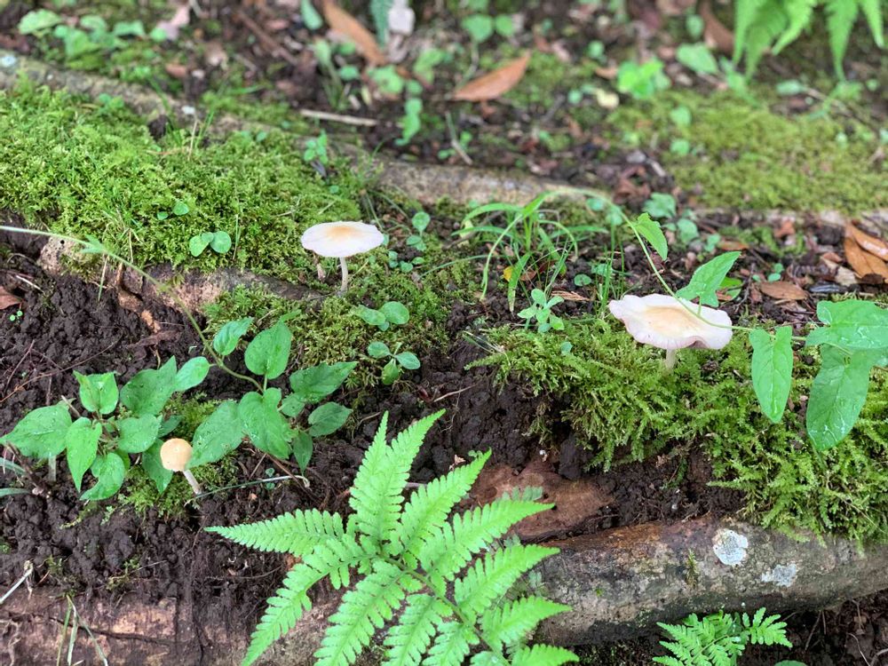 左下にある小さな丸いのが育って真ん中や右側のカサの広がった形状になるようです。