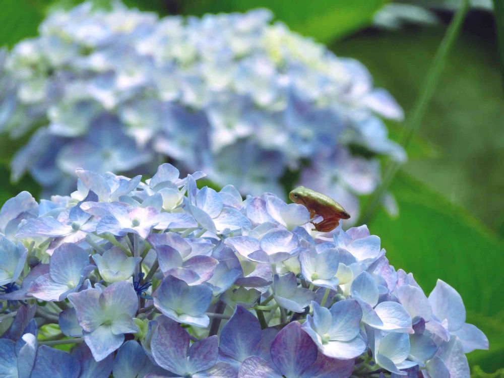 紫陽花,尻尾の残るカエルちゃん♡,四葩(よひら)の花の投稿画像